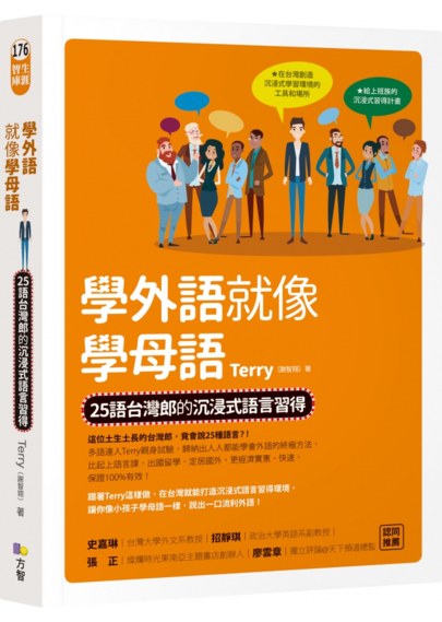 多語達人Terry親身試驗,歸納出人人都能學會外語的終極方法! 就算人在台灣,也能創造沉浸式外語學習環境的工具和場所!─給上班族一週沉浸式習得計畫。英文學了十幾年,看到「阿度仔」走向你,還是冷汗直流、不敢開口? 明明出國留學、打工度假好幾年,外語還是不「輪轉」?語言學不好,不是你的錯,用錯方法,學再久也不會用;用對方法,就算你人在台灣,學外語也能像學母語一樣,自然又高效!